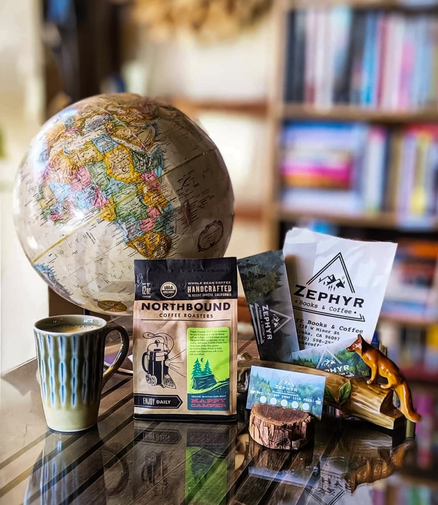 “I love coffee places and bookstores, so Zephyr Books and Coffee is an excellent place for me. It’s very inviting, relaxing and has a warm atmosphere. Yesterday I stopped in – bought a book, listened to Brian McKee play his guitar and sing, and enjoyed a delicious turmeric ginger chai tea. We are very fortunate to have this business in Yreka.”